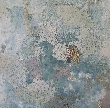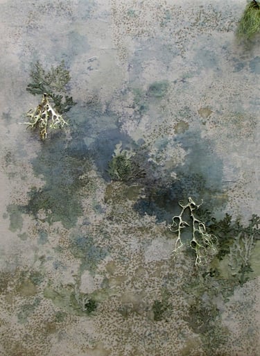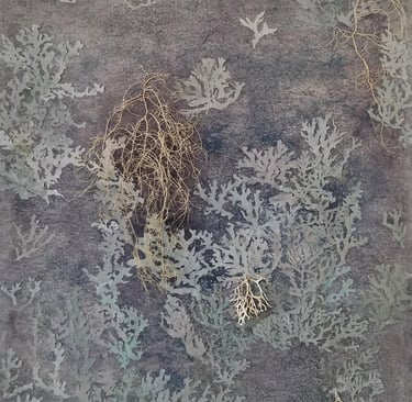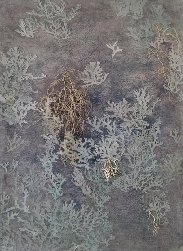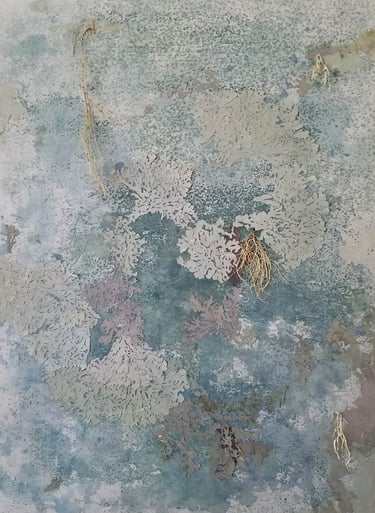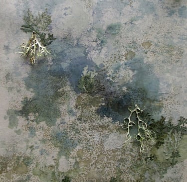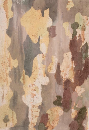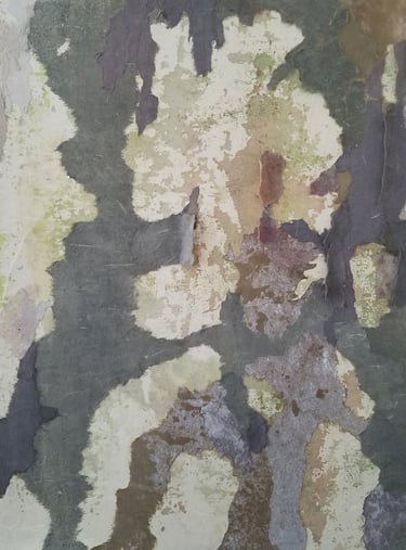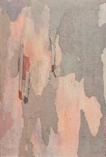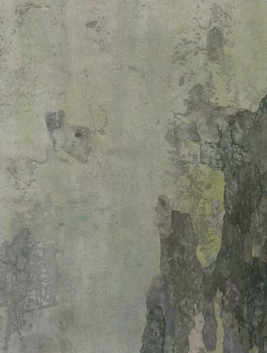Nature has been the profound inspiration for my art. I am fascinated by the unique patterns, textures and forms that natural objects present such as tree bark, leaves and so on. In these mixed media paintings, I create close-up views of tree bark to reveal the beauty beneath the surface. Tree bark is like the human skin, fragile but strong. This same essence has been used in traditional Chinese paper making. The tearing, cutting, gluing and mounting process is very similar to my working process which is involved with Chinese painting and printmaking techniques. I also attached found object (dry moss) to the surface of some paintings and create a three-dimensional look.